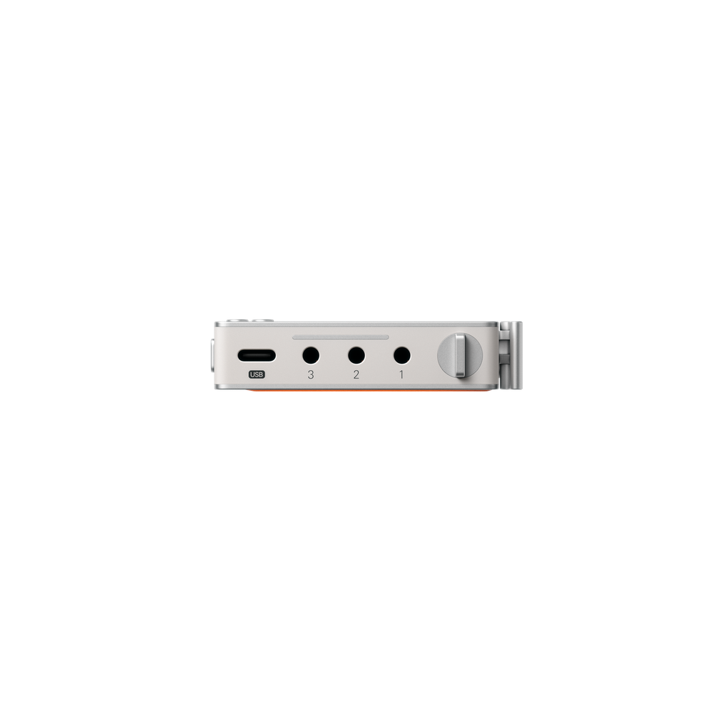 The ultra-portable audio recorder. record and listen back using the internal mic and speaker, or use any number of the 3x two-way jacks for for external mics, headsets or other signal sources. multiple connectivity options include usb-c, MFi and bluetooth. instant voice-to-text transcription available via the iOS app. included in the box: 6.35 mm jack adapter, textile usb-c cable, user guide and reusable plastic storage box.